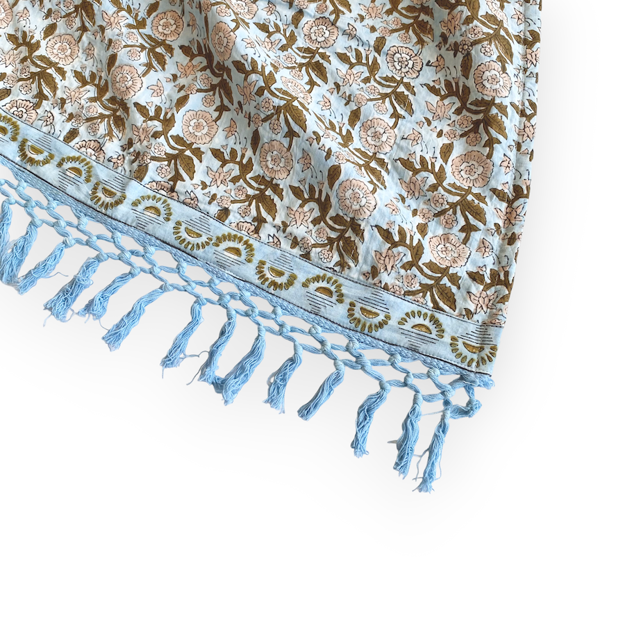 Kota, The perfect fouta, beach towel for one or two people.  Block-print technique and quilted with gold wire. 100% cotton towel on the back. Two different sizes available.