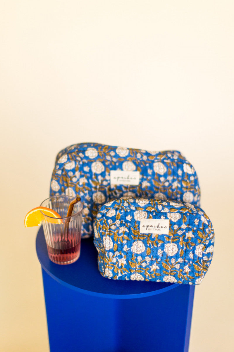 The toilet bag Ideal as a make-up case to slip into your bag. Zipped inside pocket, fully topstitched with gold thread.