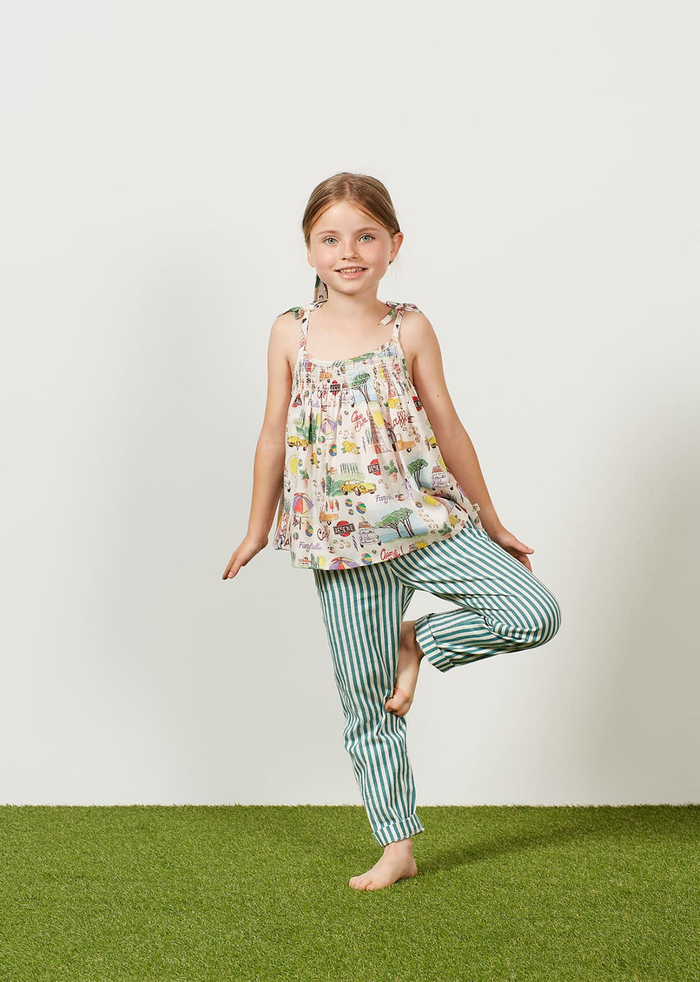Fine straps with fixed knots in detail on the shoulders, smocked in the front and back to give a beautiful volume.