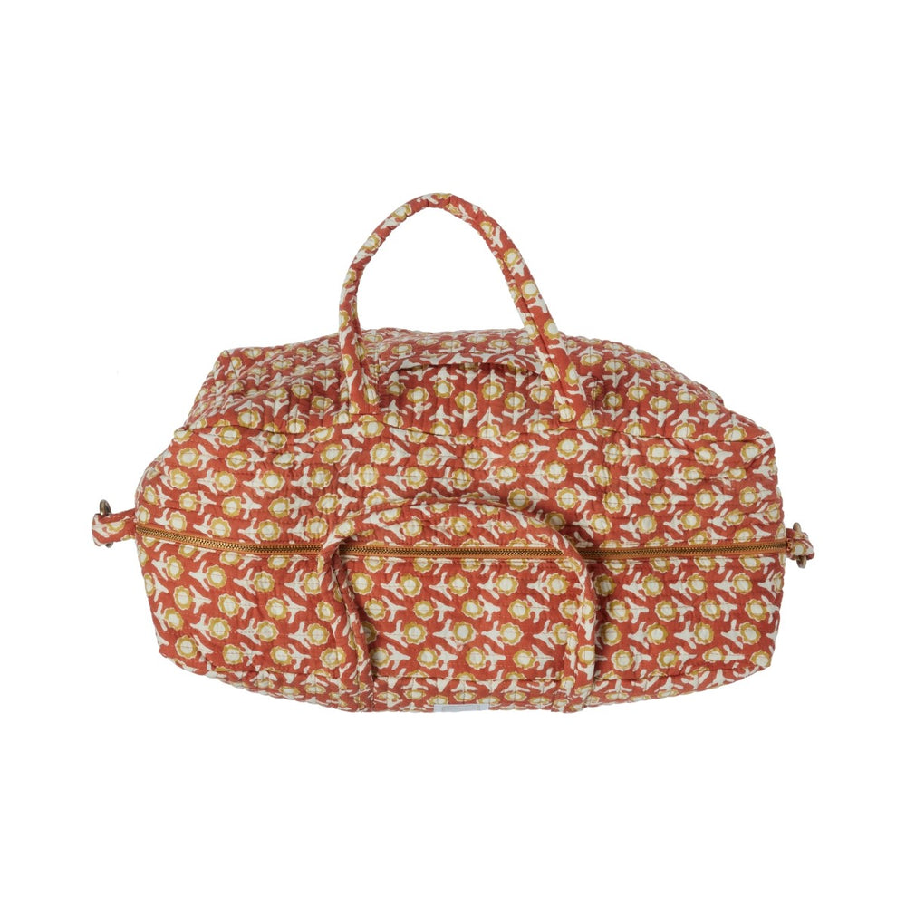 Large quilted bag printed with Indian flowers. An ultra-trendy bag with its pattern printed using the "block print" technique by our family workshop.