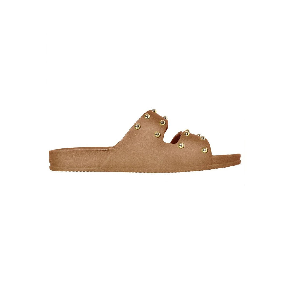 Looking for a sandal with a rock look? Discover the Florianopolis! This women's sandal is a studded sandal that will bring out your budding rocker side. Enjoy the originality of this women's sandal with its camel colour.