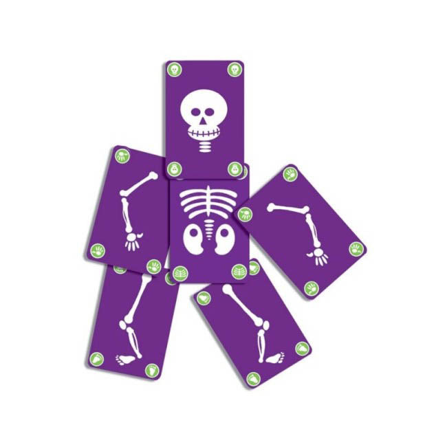 Each player aims to piece together 2 skeletons of unbroken bones or 1 skeleton of broken bones! The player can ask for a specific card from his opponent, and if they don't have it then a card can be picked from the pack. If they do have it they must pass it to the player - but it may be broken or unbroken! The rules come in 8 languages for this simple game.