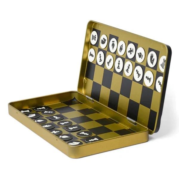Get ready for a quirky twist on classic chess with Campfire Chess from Gentlemen's Hardware. This compact set features flat magnetic pieces with printed symbols for easy travel. Comes in a tin for storage and makes for a great gift for travellers and strategists. Checkmate, anyone?!
