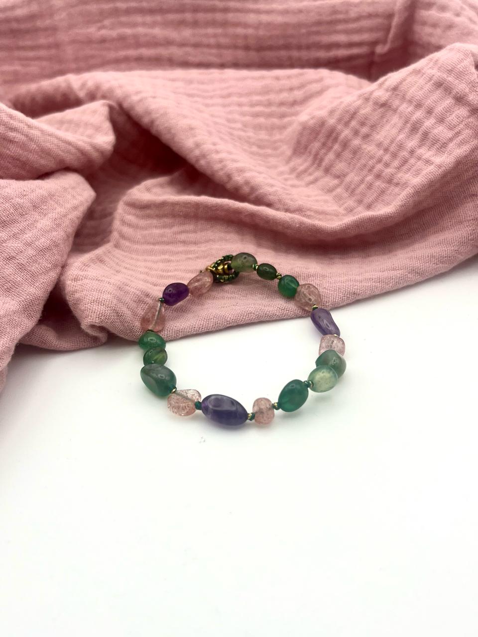 The Conca bracelet features a delicate design with gold-plated steel and stunning tourmaline beads. Perfect for adding a touch of elegance to any outfit.