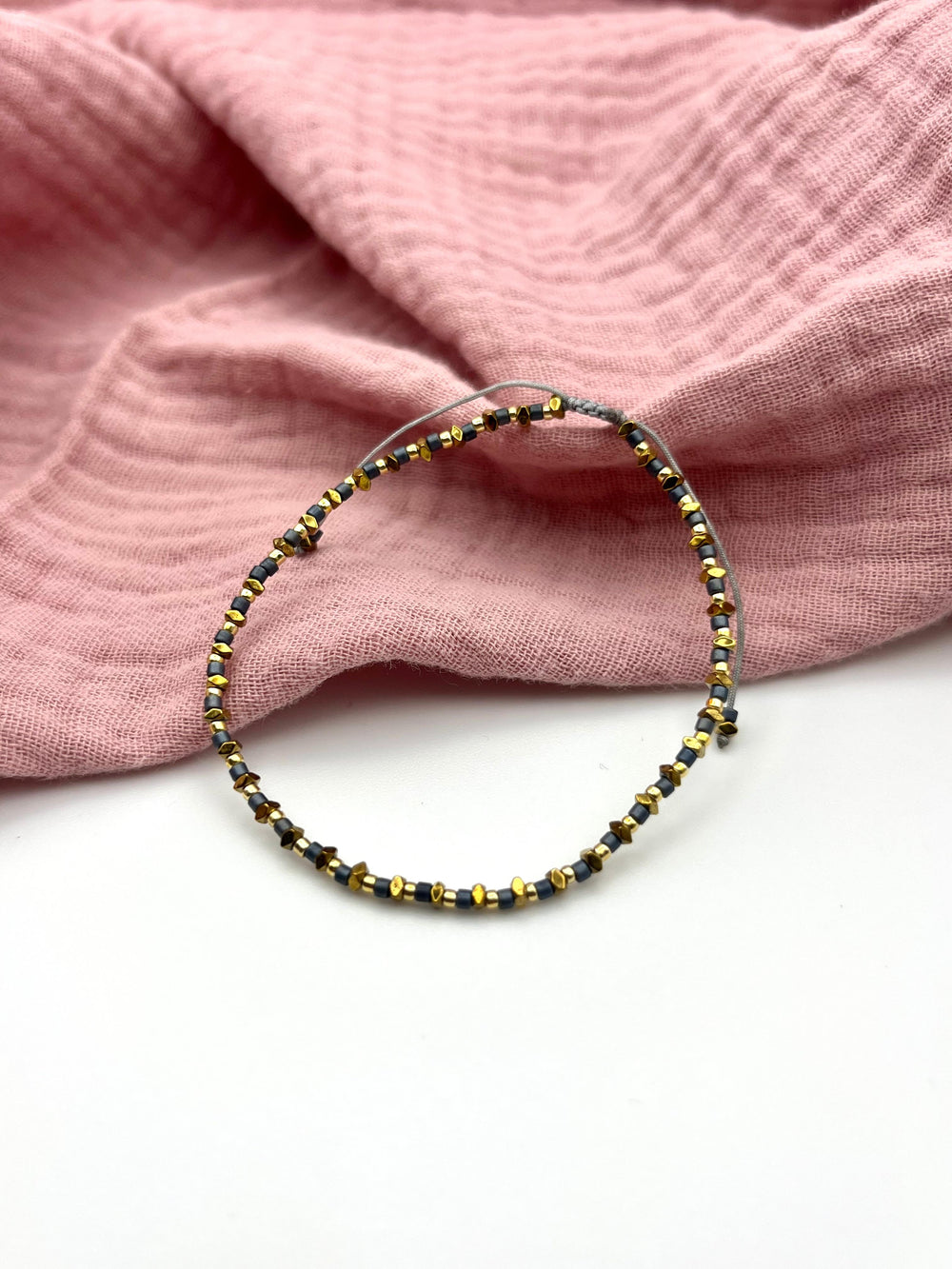 The Juana bracelet features a delicate design with gold-plated steel and stunning tourmaline beads. Perfect for adding a touch of elegance to any outfit.