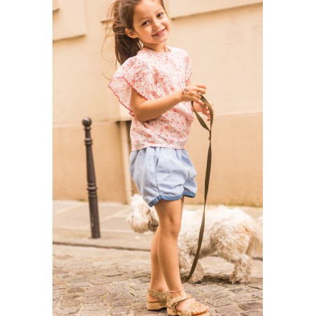 Made from soft printed cotton, the Louis Louise Blouse Jasmin offers a light and airy feel. Designed with a loose fit, it features delicate ruffled sleeves for a romantic touch. Contrasting croquet details add an elegant finish to this timeless piece.