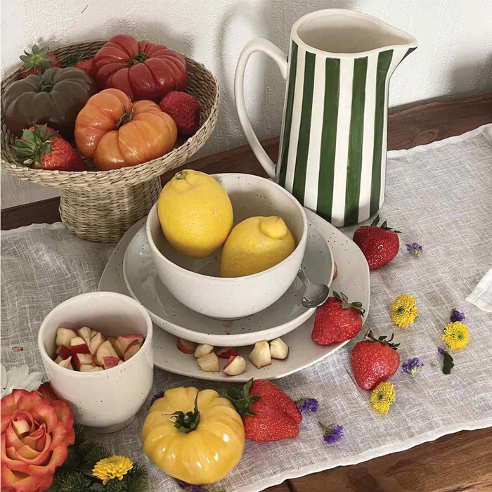 This vintage-style ceramic pitcher holds up to 1 liter, perfect for serving drinks like water or lemonade. With its charming striped design, it also makes a beautiful vase for fresh or dried flowers.