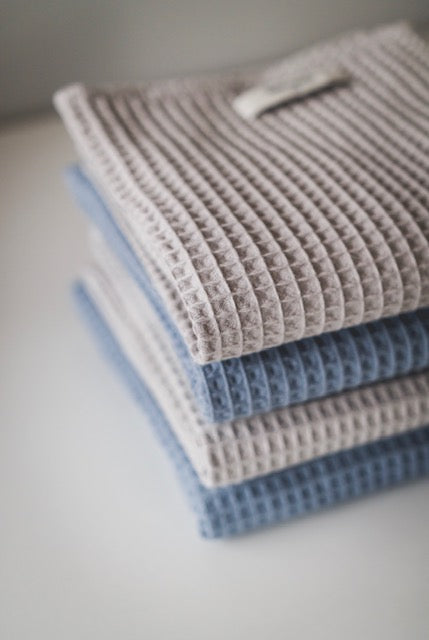 Cotton dusty blue baby blanket. A snuggle blanket with a waffle structure and very thick and delicate weave. An indispensable element in a baby layette. It will be perfect as a duvet, pram blanket, or a snuggle blanket. Your child can continue using it from baby all through to preschool years. It absorbs water well, which means it can also be used as a baby towel. Other colors available: dusty pink, dusty blue, light grey, sand, white.