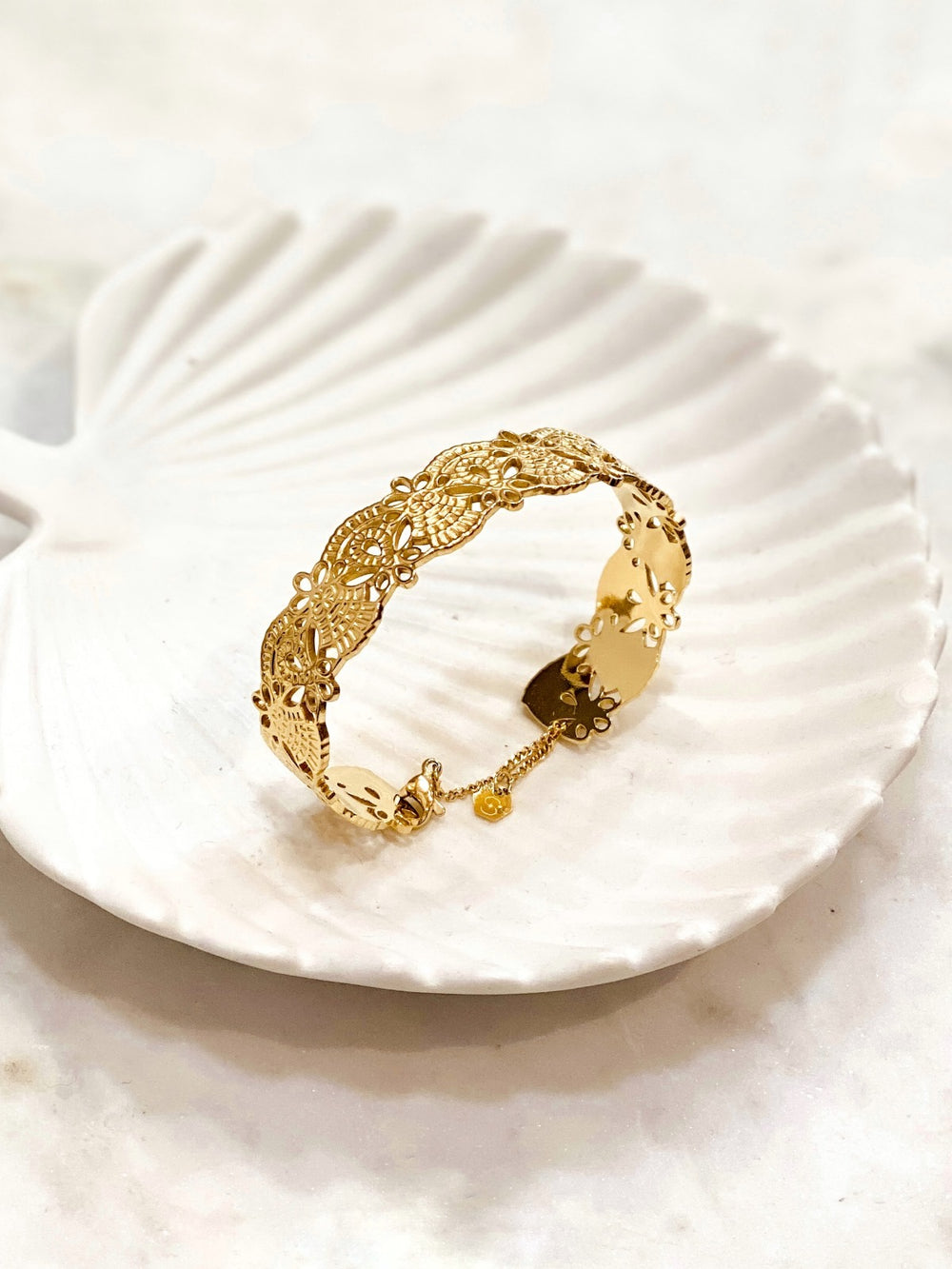 The Shyloh Gold Stainless Steel Bracelet combines sleek, modern design with durable luxury. Its polished gold finish makes it a versatile and timeless accessory for any occasion.