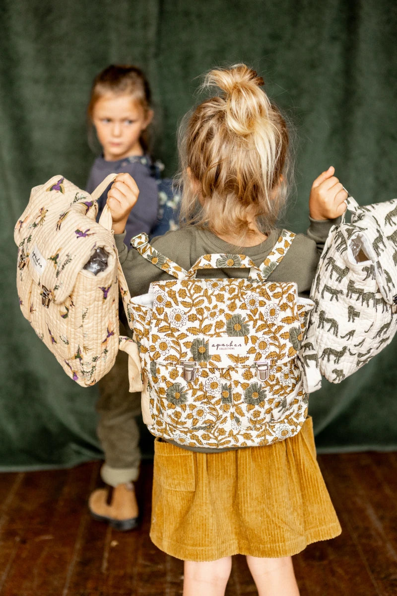 Apaches Collections was born with the desire to offer mixed, timeless and qualitative dressings for babies and children. Apaches Collections is inspired by nature's colors and enhances exclusive prints for each dressing. The brand was created by Clémentine Deroubaix in 2015 and then joined by Clémence Wattine in 2017. Besides its clothing collections, Apaches Collections offers as well accessories for all the family. They are made in India thanks to the blockprint technique. Apaches Collections is also a family affair. Indeed, their husbands support them in this project and its growth. Moreover, they are inspired by their children who are the first brand ambassador. |