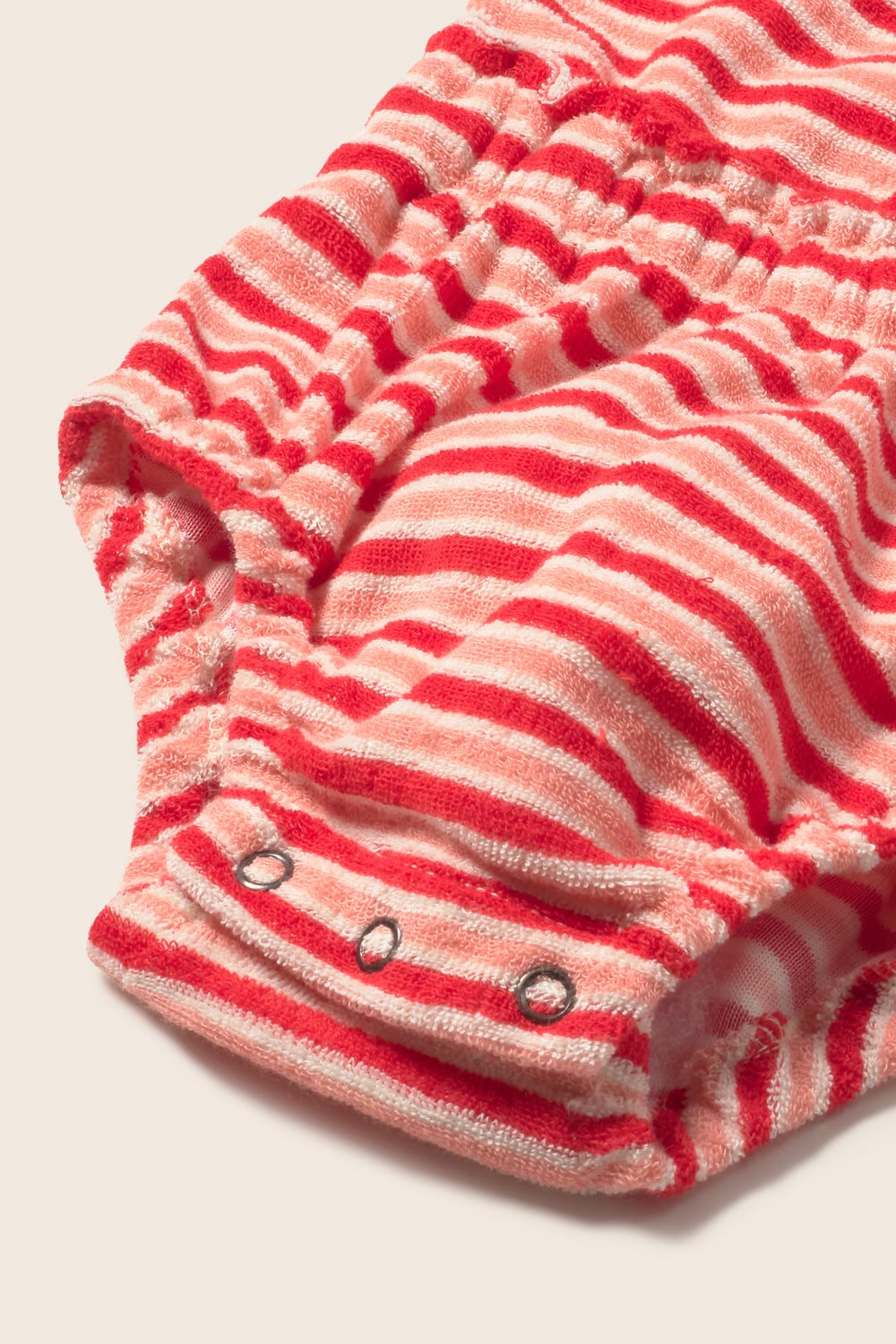 Crafted from soft, absorbent cotton terry with a gentle elastic waist, it offers ease of movement and a cozy feel. A playful yet timeless piece perfect for sunny adventures and everyday wear.