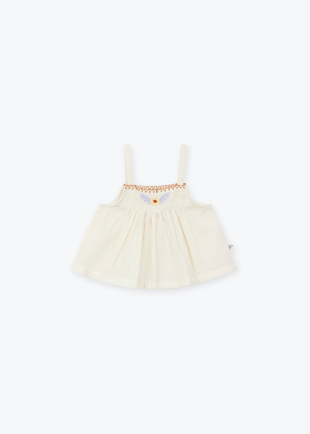 This elegant baby strap top features beautiful floral embroidery for a soft, timeless look.