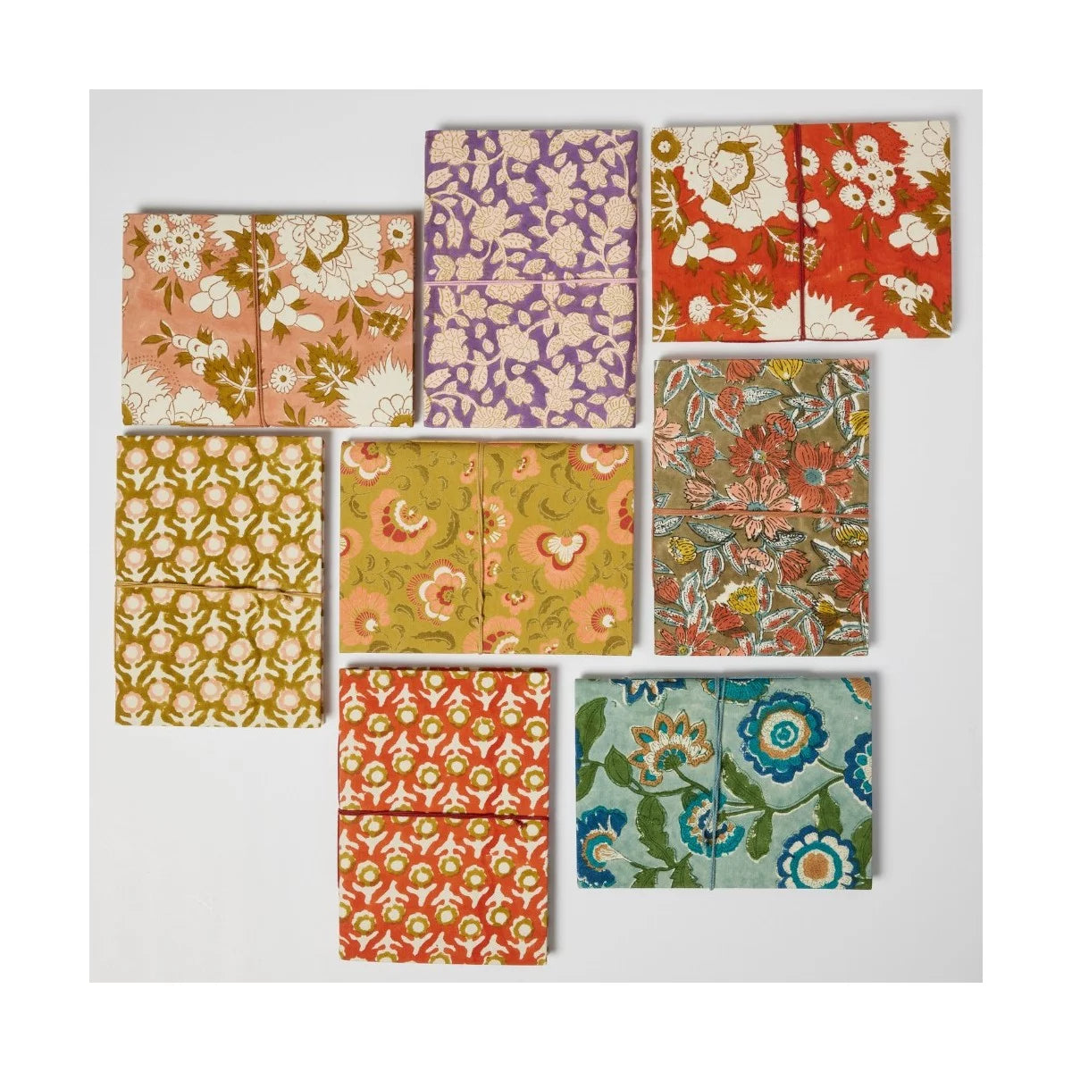 This Indian fabric notebook was handcrafted using the block print technique, featuring our exclusive and vibrant patterns on soft cotton fabric. It is designed with care for the environment, using recycled paper. This beautiful notebook will accompany your thoughts and dreams.