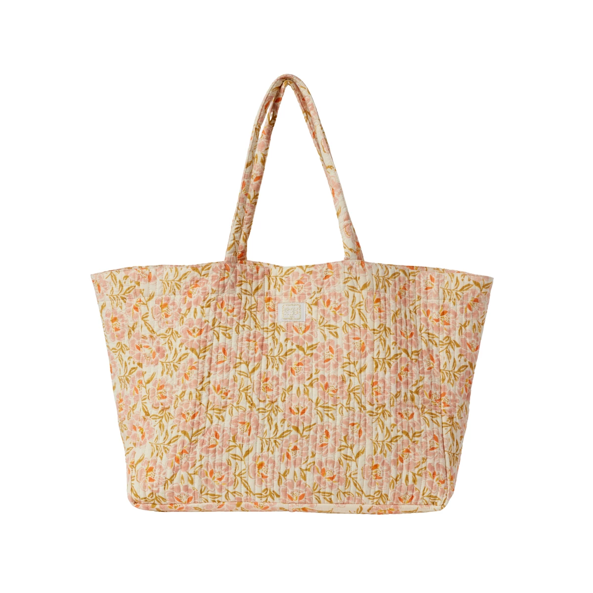 Long handles for a super comfortable shoulder carry and large gussets on the sides to slip in a multitude of treasures. We fall for its striped lining and its interior pocket that nicely finishes this multi-function bag as well as its vertical quilting.