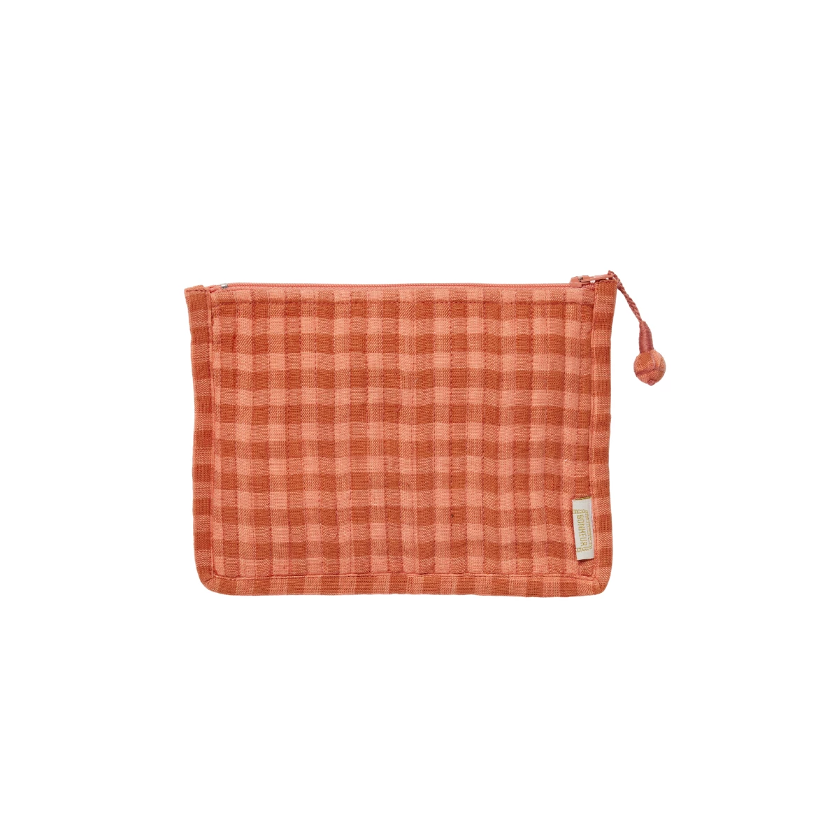 Small Pouch - Vichy Rose / Terracotta - شنطة