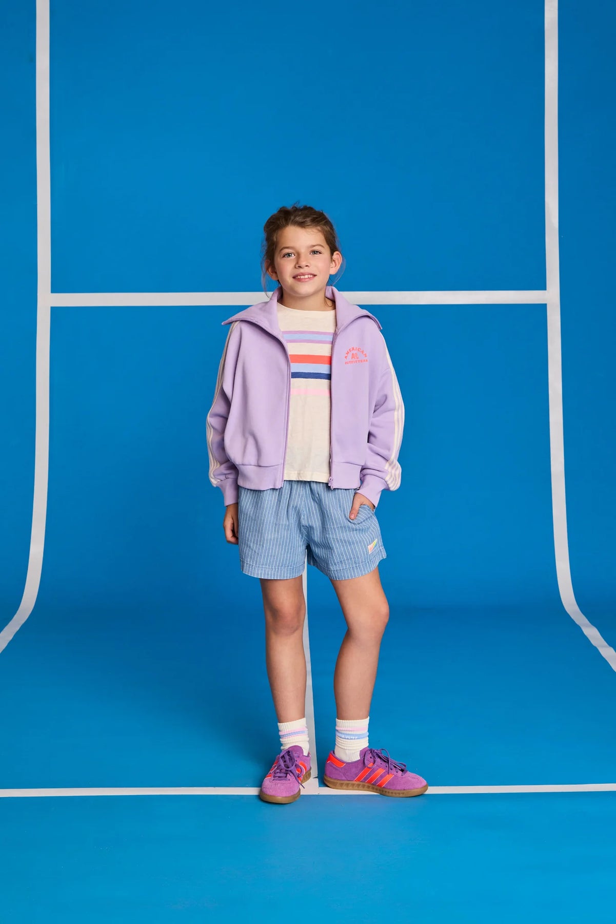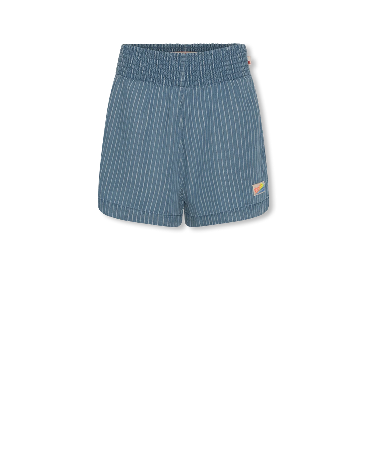 The Eve Stripe Shorts are comfortable girls striped shorts designed for effortless summer style. Featuring a soft blue fabric with fine vertical stripes and a stretchy elastic waistband, these lightweight shorts offer a relaxed fit that is perfect for everyday wear, holidays, and warm-weather adventures.