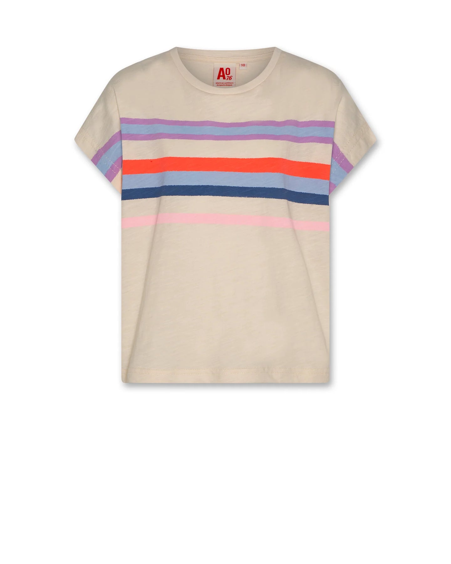 The BO Sahara T-Shirt is a girls striped cotton t-shirt crafted in soft beige jersey with bold multicolor chest stripes. Designed with a relaxed fit and lightweight feel, it’s the perfect everyday summer tee for school, play, and weekend outings.