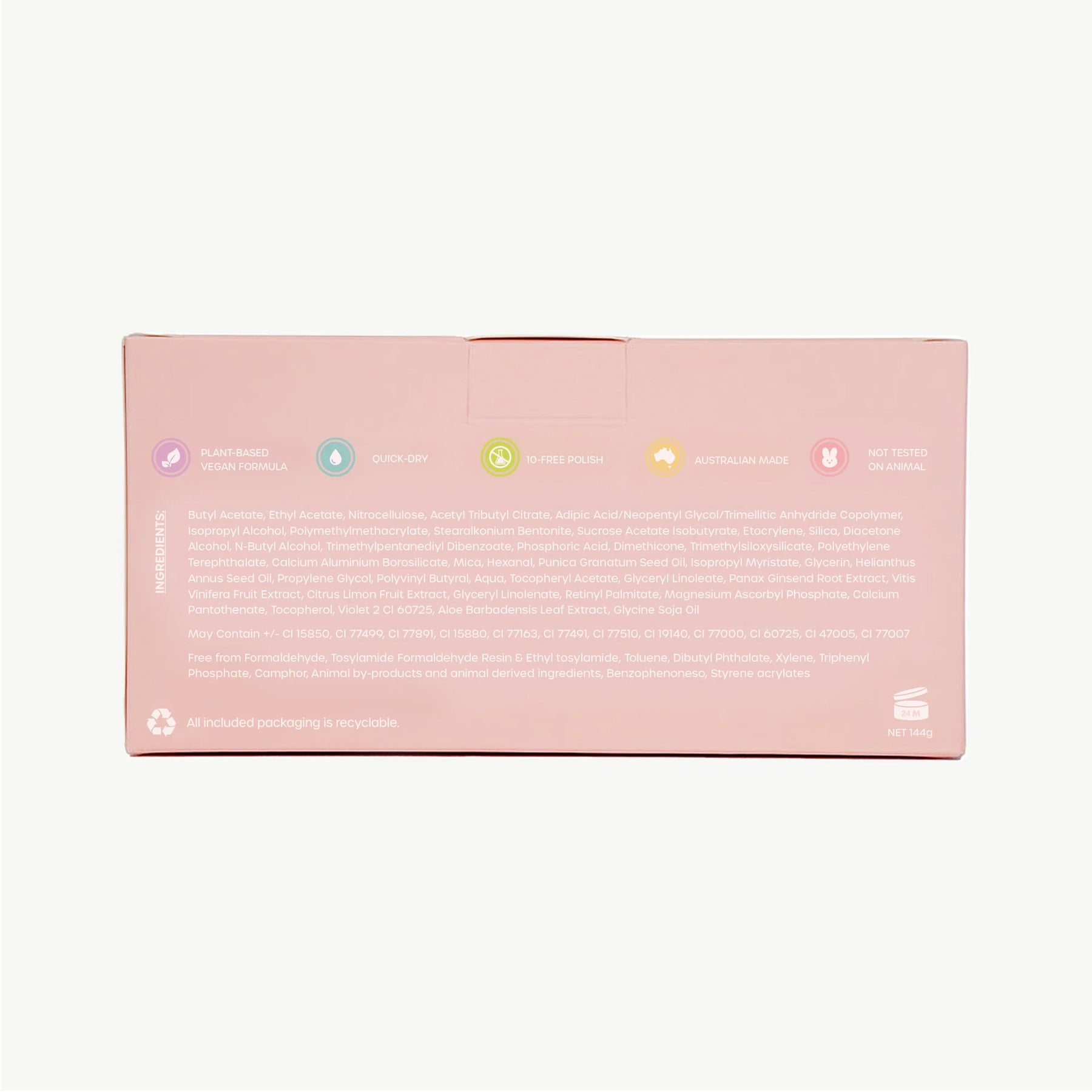 A playful kids nail polish set designed for safe, creative fun. Made with a gentle, water-based and vegan formula, these colourful shades are perfect for little hands. Beautifully boxed for gifting, it’s a joyful addition to dress-up days and special celebrations.