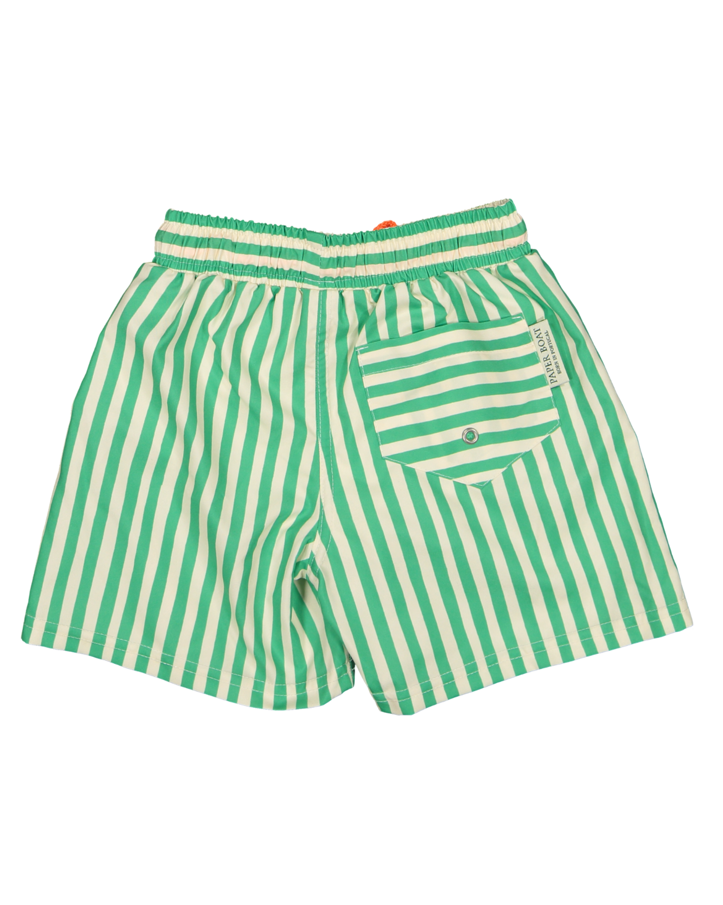 Designed with green and white vertical stripes, these shorts are elevated by a contrast orange drawstring and an elastic waistband for a secure, adjustable fit.