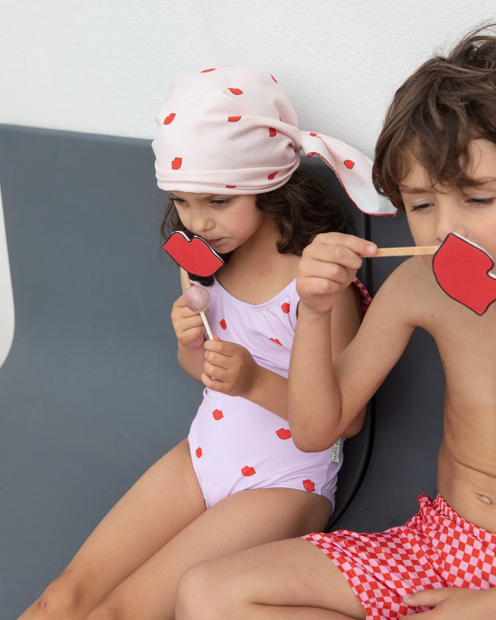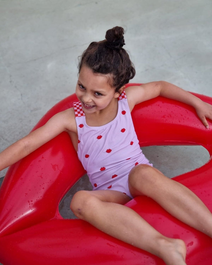 This one-piece girl’s swimsuit features a vibrant Textured Lemon pattern with playful yellow and neon details, cross-back straps, and a soft striped texture for added charm. Made with super smooth, soft lycra and fully lined front and back, it includes bottom springs in size 1Y for easy diaper changes—combining style, comfort, and practicality.